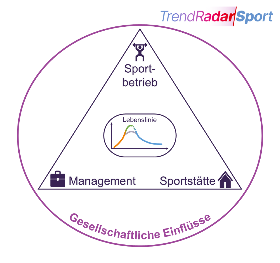 Das Trendradar verknüpft diese Bereiche mit den gesellschaftliche Einflüssen als Rahmenbedingungen, um den organisierten Sport bei der strategischen Ausrichtung und Anpassung an aktuelle Entwicklungen zu unterstützen.