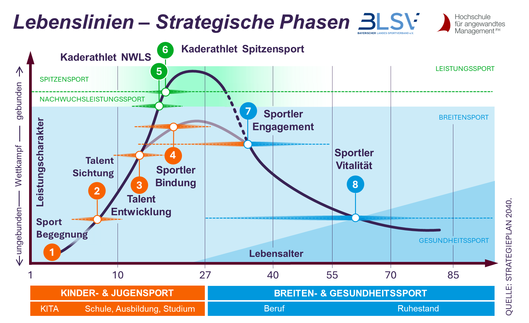 Die Lebenslinien zeigen, wie sportliches Engagement über die gesamte Lebensspanne hinweg entsteht und wächst, vom ersten Kontakt mit dem Sport bis hin zu ehrenamtlicher Tätigkeit oder Aktivitäten im Gesundheitssport. Wer junge Menschen gezielt fördert und langfristig bindet, braucht ein tiefes Verständnis für diese Übergänge. Genau hier setzt das Forschungsprojekt Trendradar Sport an, mit dem Ziel, Talente zu erkennen, Potenziale zu stärken und lebenslange Sportbeziehungen zu ermöglichen.